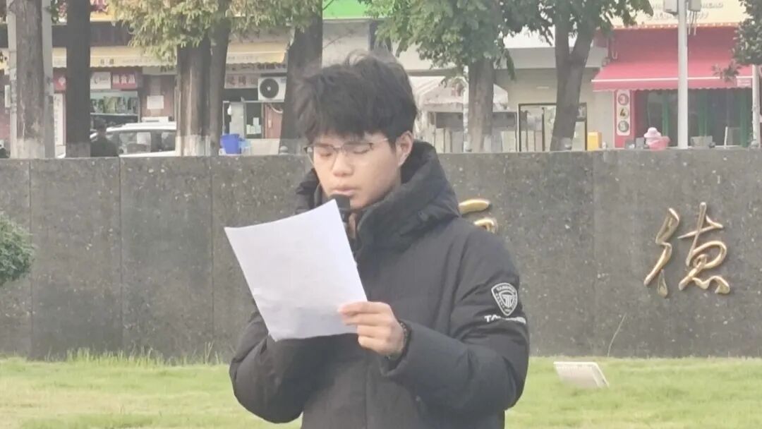 为纪念中国人民抗日战争暨世界反法西斯战争胜利80周年,方文林在红旗下进行演讲,此刻晨光中飘扬的五星红旗,是历史的见证,更是精神的传承。80年前,无数青年以热血护家国、用生命铸史诗;如今,新时代大学生当接过先辈接力棒,以钻研强本领、以奋斗守和平,让爱国情怀在青春中绽放,让五星红旗永远在和平阳光下高高飘扬!