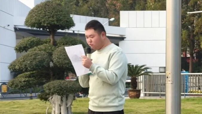 本次升旗仪式由兰玉先主持,他有序引导流程推进,用清晰的指令,全程沉稳控场,确保仪式顺利进行。