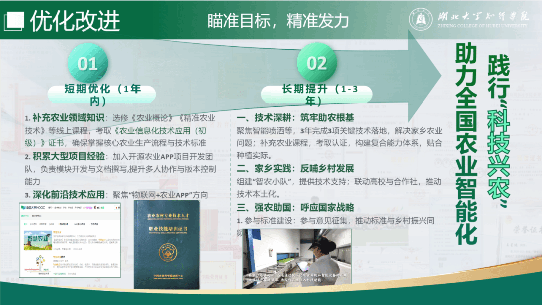 童年见外婆烈日背农药桶的经历和了解智慧农业人才缺口大的现状,让她确定以代码深耕此领域并瞄准研发工程师目标。在校期间,她借“实践加理论”积累实力:专科田间实训、本科参与滴灌算法研发与智能采摘小车开发,还获省级奖项。