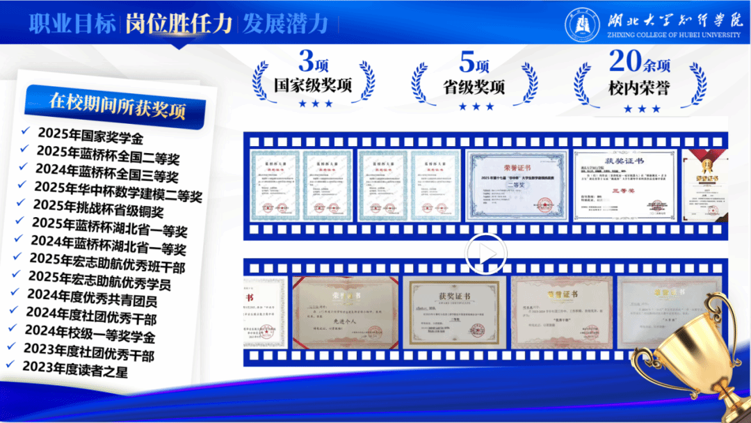 在肖凯老师的悉心指导与专业赋能下,其指导的学生在赛事中表现亮眼:计信学院学子计科2301zb梅琳凭借清晰的成长路径规划与实践成果,荣获成长赛道金奖;软件工程2201班何佳骏以精准的职业定位与岗位匹配度分析,斩获就业赛道铜奖。