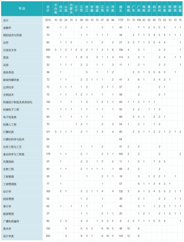 2025年学校分省分专业招生计划表